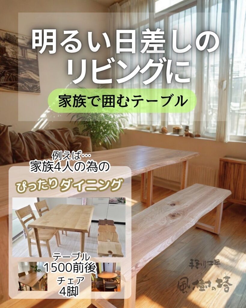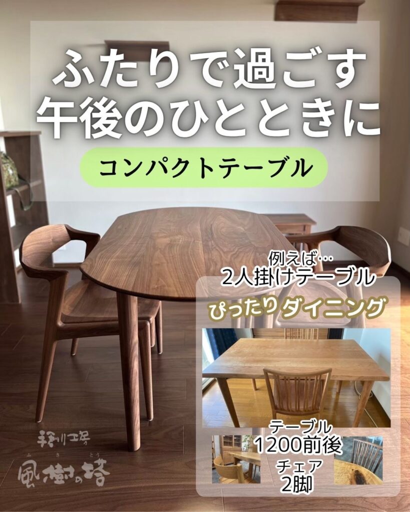 風樹の塔では、無垢材のテーブルやチェアを中心に、