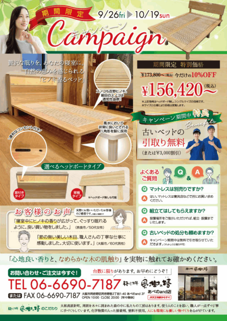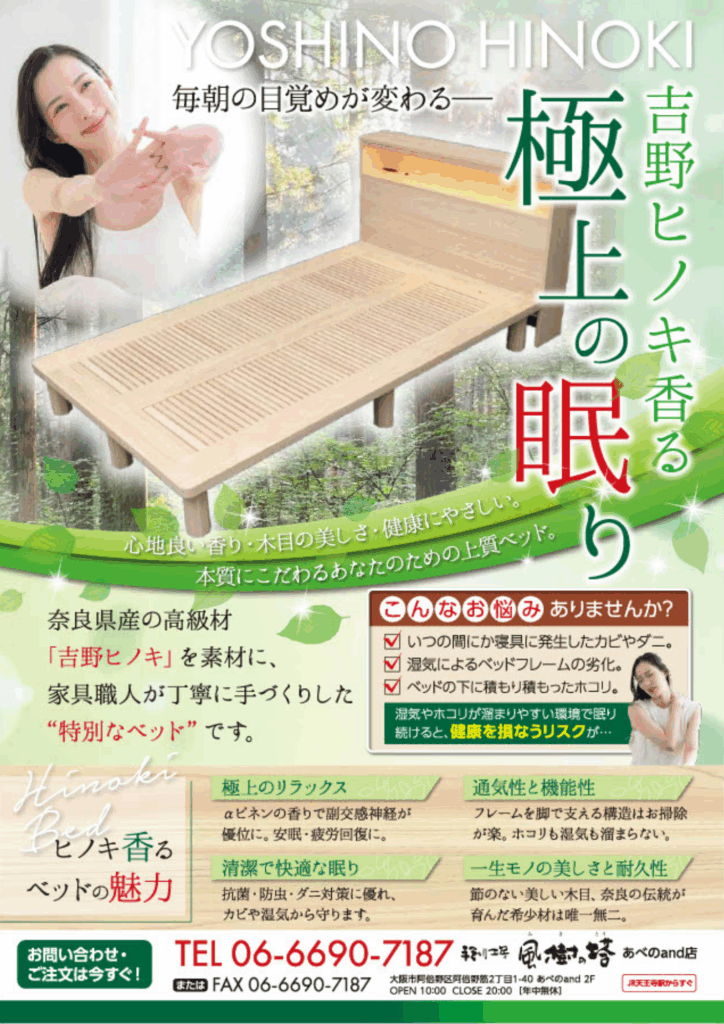 【あべのand店】ご好評につき再開催!「ヒノキ香るベッド」キャンペーン