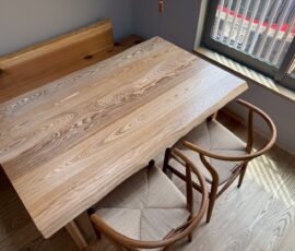 個性的な木目をした土地の一枚板を納めました。一見いびつなフォルム、その中に大自然の偉大さが凝縮されたような感動があります。